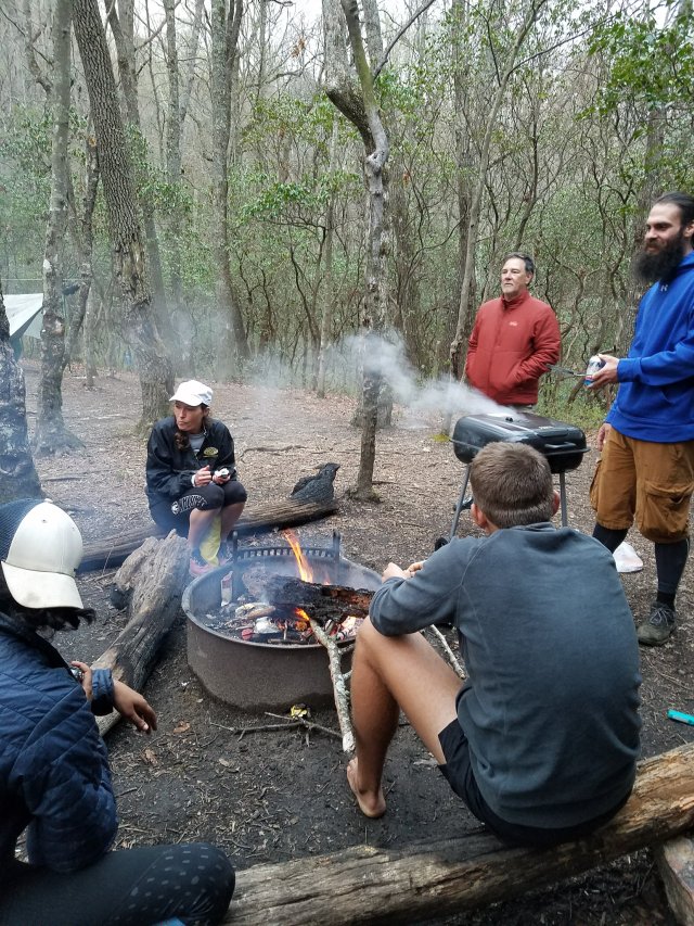 I perked up quickly after that! Haha! Who’s the sad sack now? I’ve got hot dogs! He also started a fire and the little shelter group sat around and ate and talked. That’s another nice thing about the trail: there is rarely cell service at the shelters. So everyone actually talks to each other.