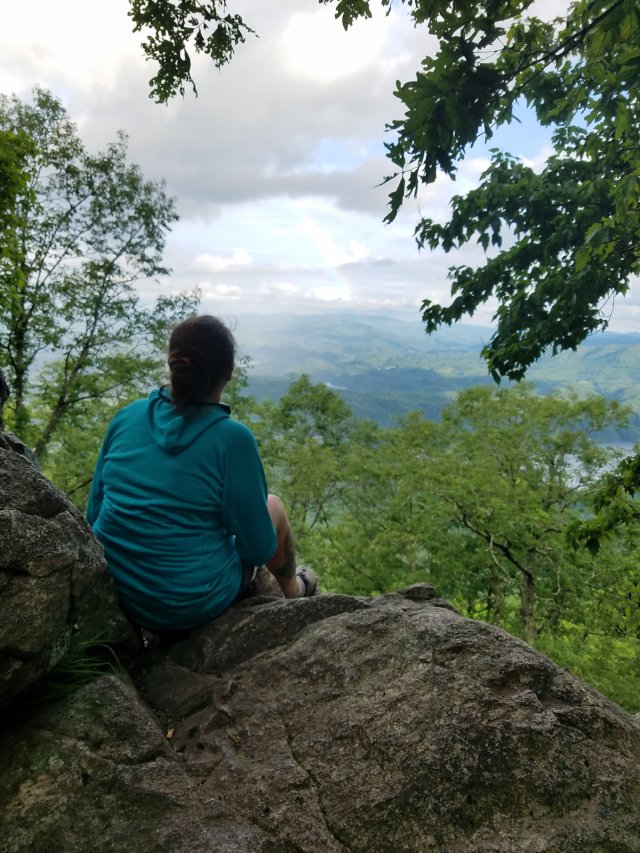 The trail around Watauga lake was flooded so we were rerouted to the road for awhile. To honest I was fine with it because I didn’t bring my kayak. The day was mostly sunny with the afternoon bringing more thunderstorms. This time though I made it to the shelter just in time and stayed dry…mostly. A rainbow formed as the sun flickered through the clouds. It was quite the spectacle. Everyone came out of the shelter to look at it and that rainbow was probably the most admired for miles around.