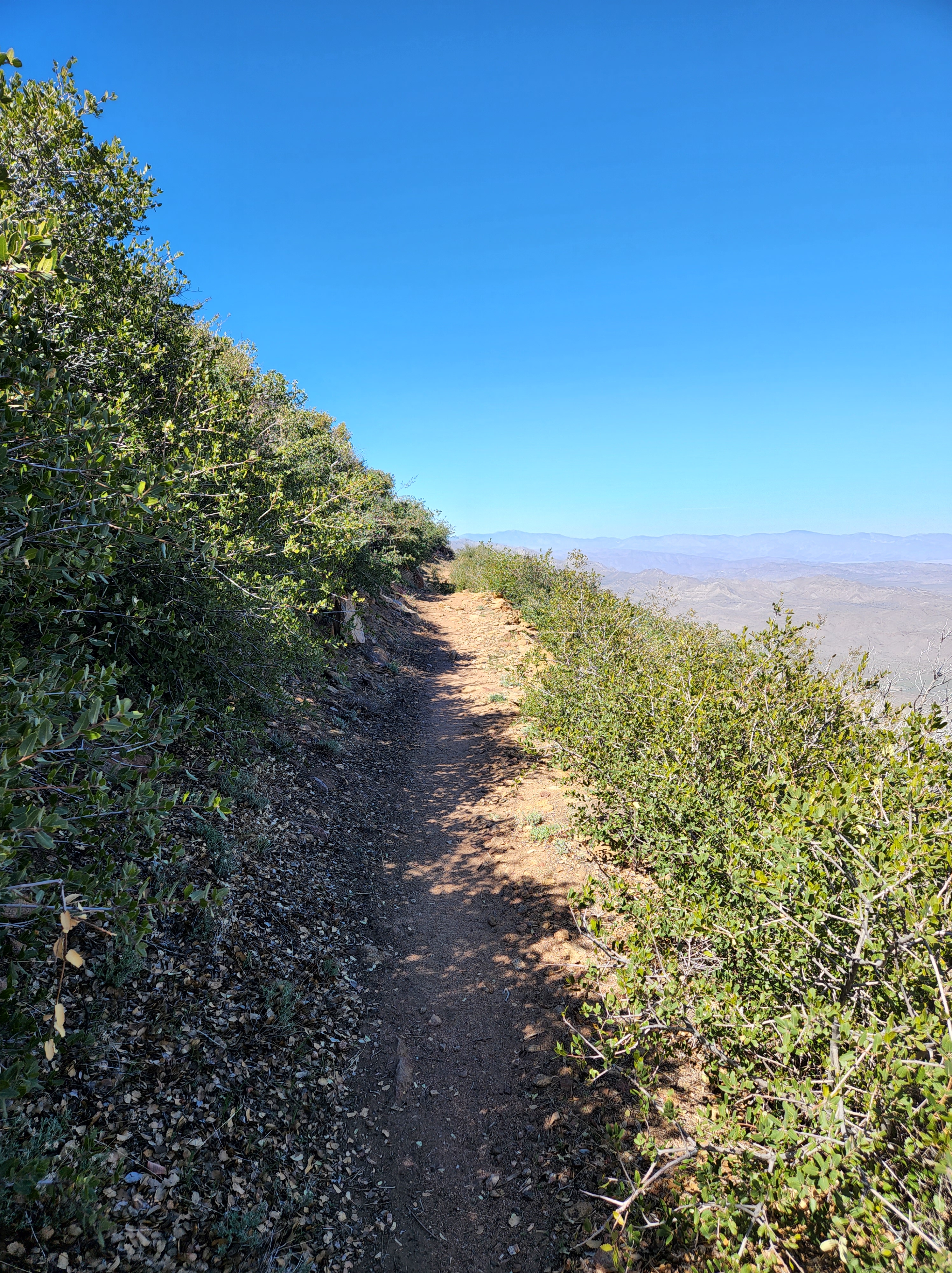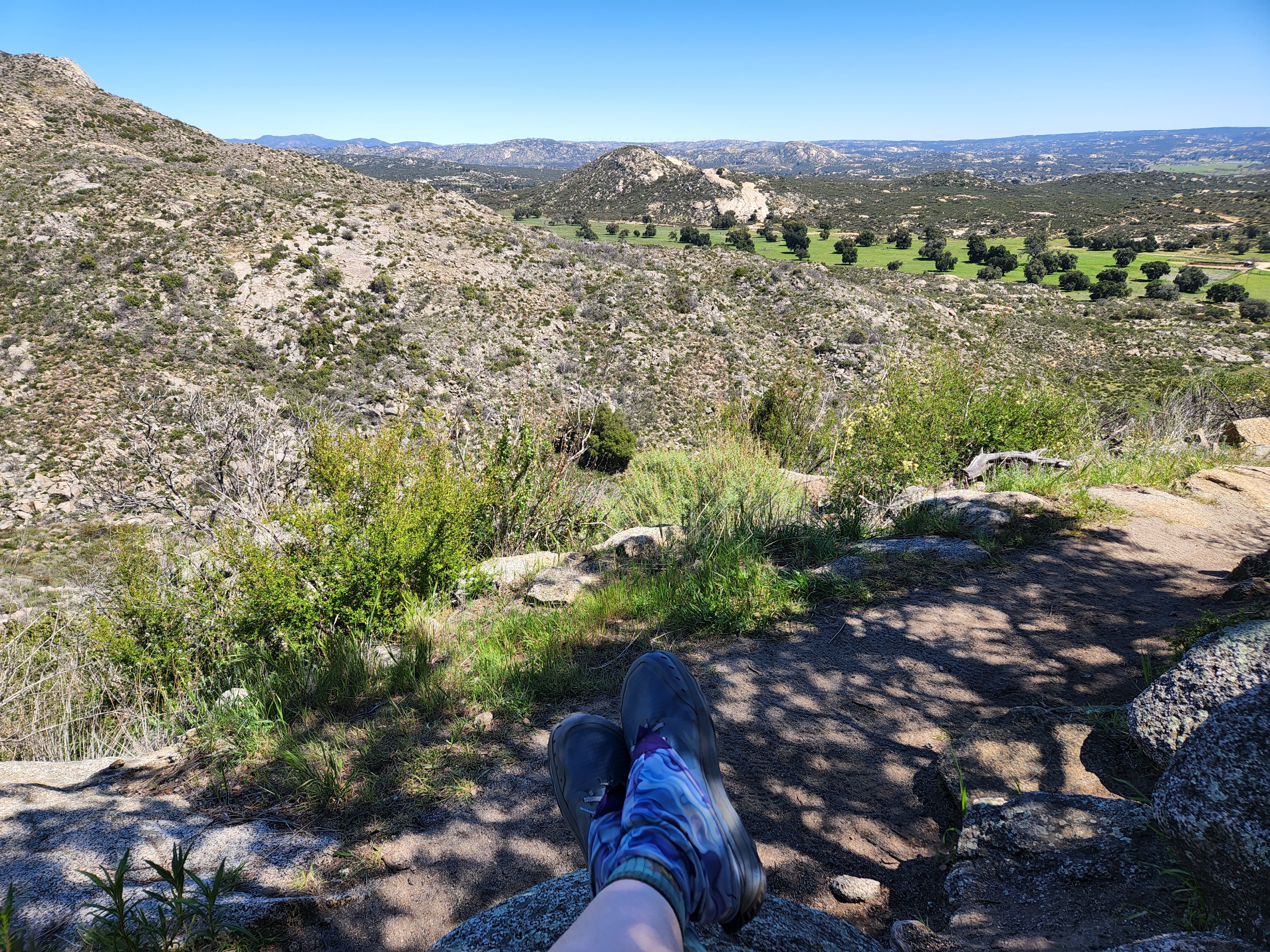 My left hip started hurting really bad and made the climb even more miserable. I had to stop and stretch every 10 minutes. At one point I could have stayed and rested there for a few hours, but the goal was to get to Lake Morena and an actual real Cheeseburger. It meant punching through my mental wall, but also letting my frustration and pain be what it was. This was happening, and I knew I could make it through. I wasn’t expecting to butt up against my mental resisitance so early, but here I was.