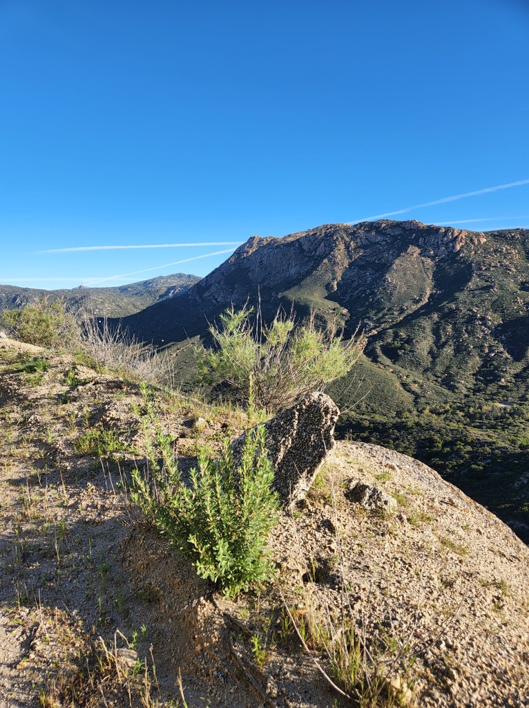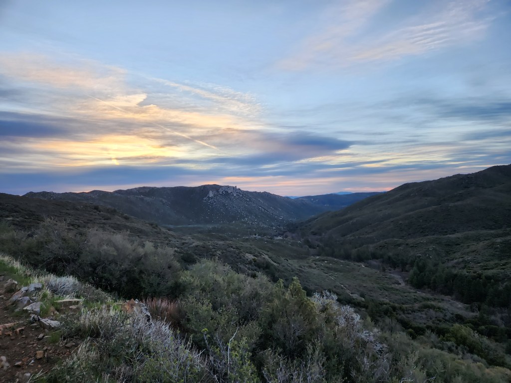 They were going to hike on though and try to hitch in Julian, but I wanted to spend one more night out on the trail. I found a secluded spot at the top of Oriflamme Canyon that was only another 3.4 miles. There was a huge boulder and brush to block most of the winds. I decided tonight was the night I’d try cowboy camping for the first time. Why? With rain coming? I honestly don’t know.