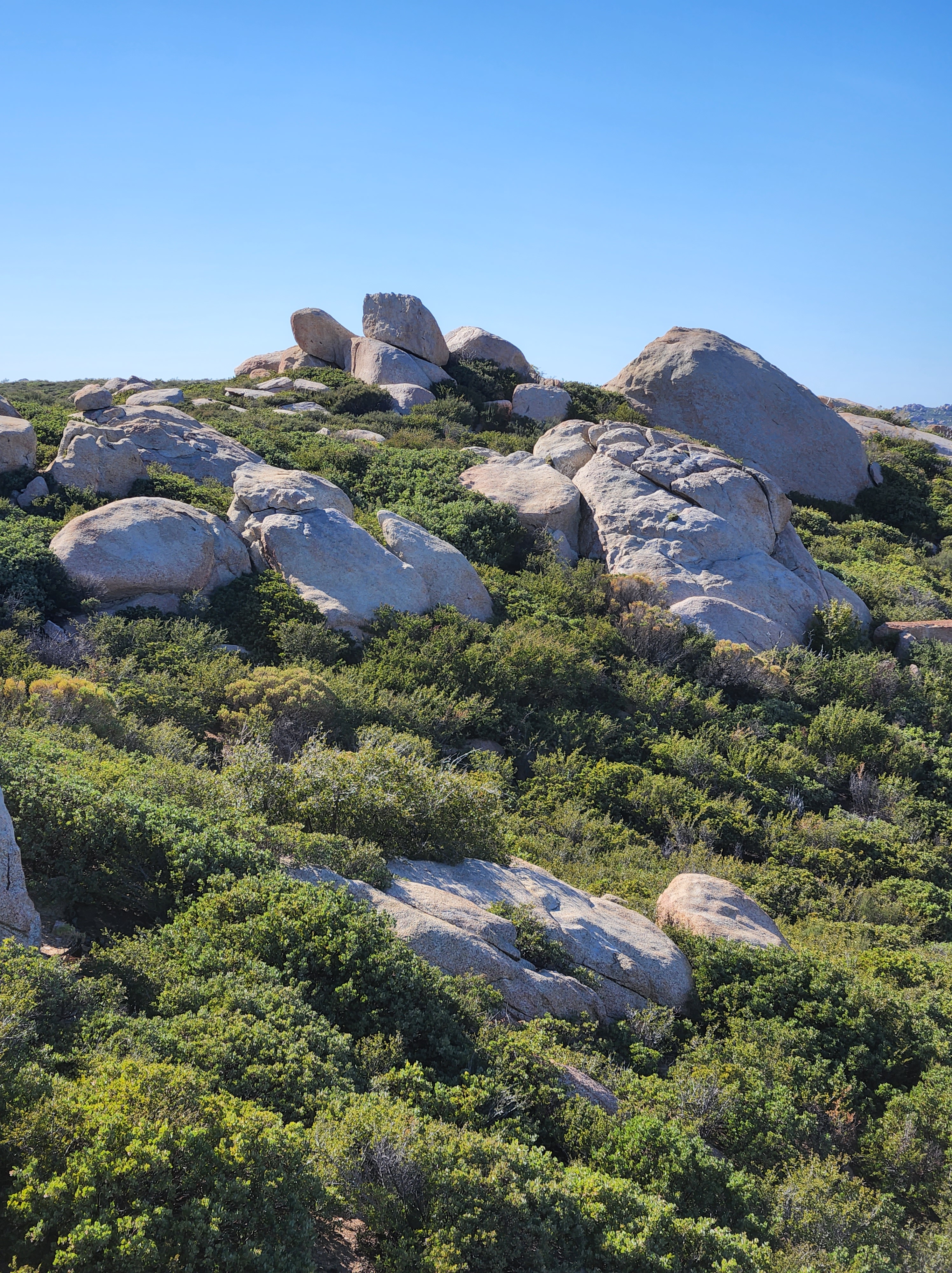 Welp, boulders and shrubs can only do so much. Around 0430 in the morning, the wind kicked up and I could see in the ambient night light that clouds were blowing in. I decided there was no reason to keep sleeping, so I gathered my things in a hurry, brushed my teeth and set off.