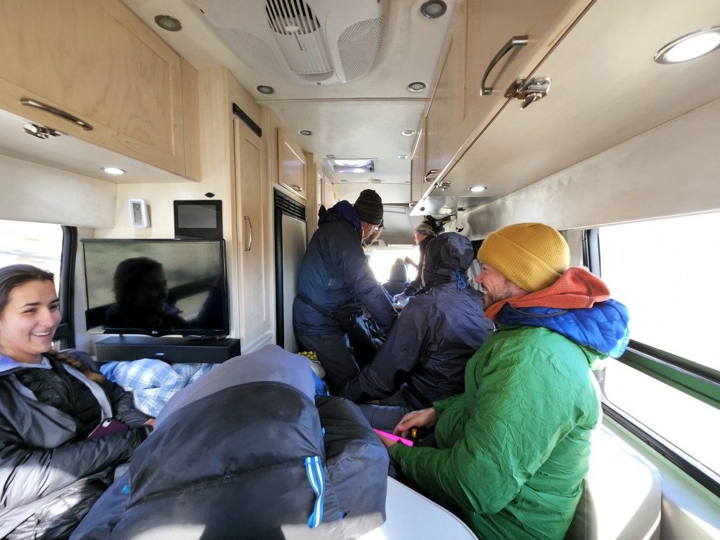 I got to the Sunrise Trailhead on the highway and sat in the pit toilet to warm my fingers up. There was no traffic at this time of morning anyway, so wasn’t going to stand out in the cold wind with no hope of a hitch. Eventually though I went out to wait and see, and then another group of hikers showed up and we all commiserated on our pitiful state. In a stroke of serendipity, a man in a camper van rolled up and we crammed everybody and all our things in there. And so we went to Julian.